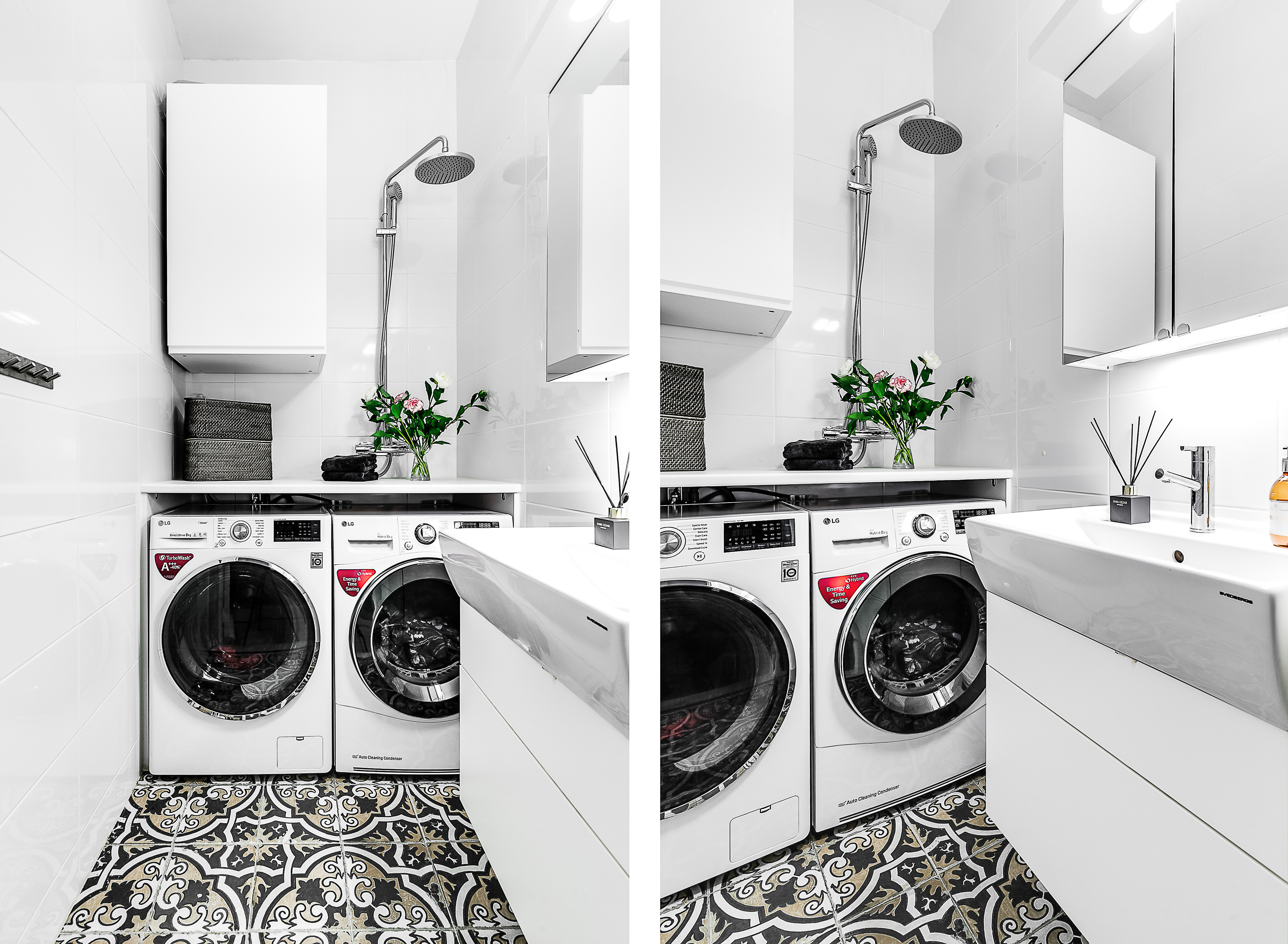 ---Separat tvättstuga som tidigare var ett badrum och säljaren har sparat duschväggarna i glas. Tvättstugan är utrustad med tvättmaskin, torktumlare, praktisk bänk ovan tvättparken, skåp, dusch, spegelskåp samt handfatskommod. Golvvärme.