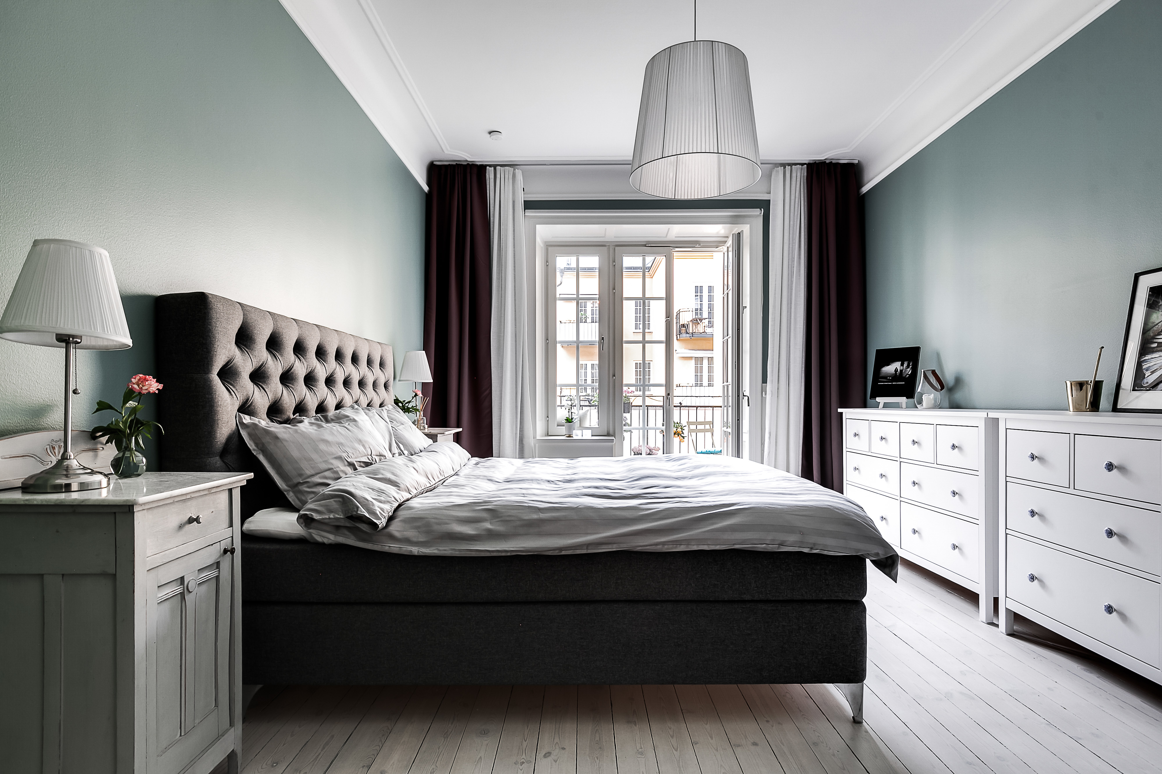 ---Master bedroom med utgång till den rymliga balkongen mot trevlig innergård. Trägolv samt målade väggar. Ingång till mycket stor klädkammare.