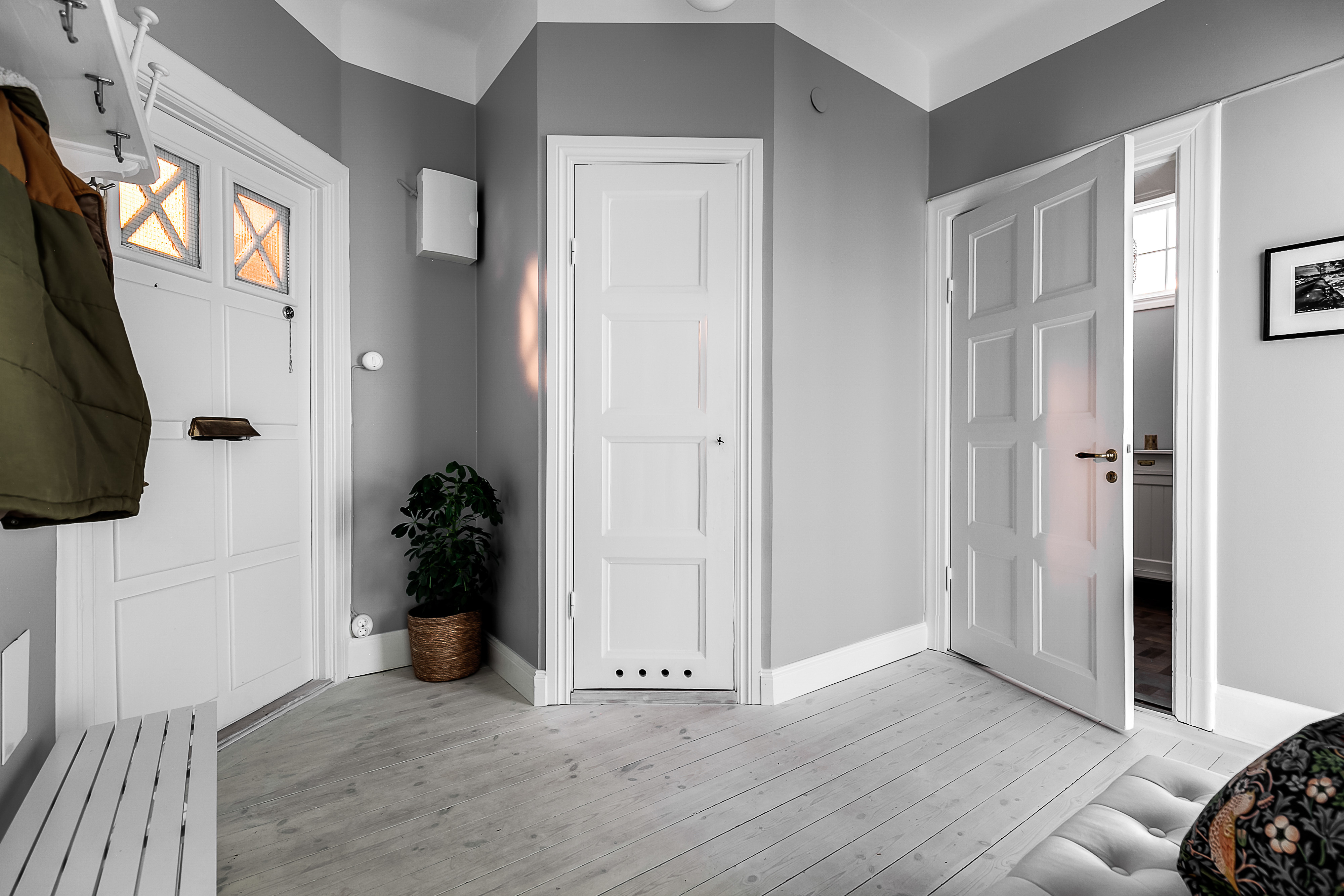 --- Gamla pigingången till lägenhetens kök fungerar som avhängningsyta av ytterkläder som är våta etc. Perfekt för barnfamiljen.